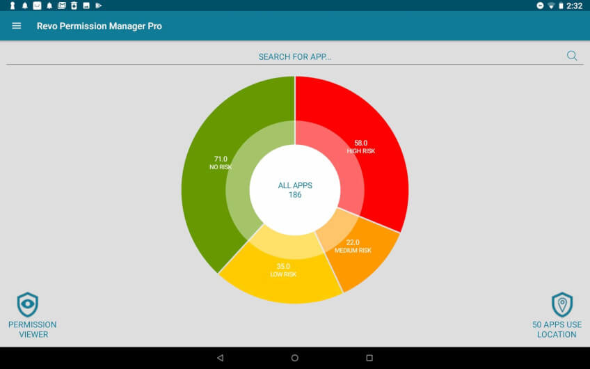 Open Revo Permission Analyzer, and tap the “PERMISSION VIEWER” button in the bottom left corner (you can also find it in the main menu).